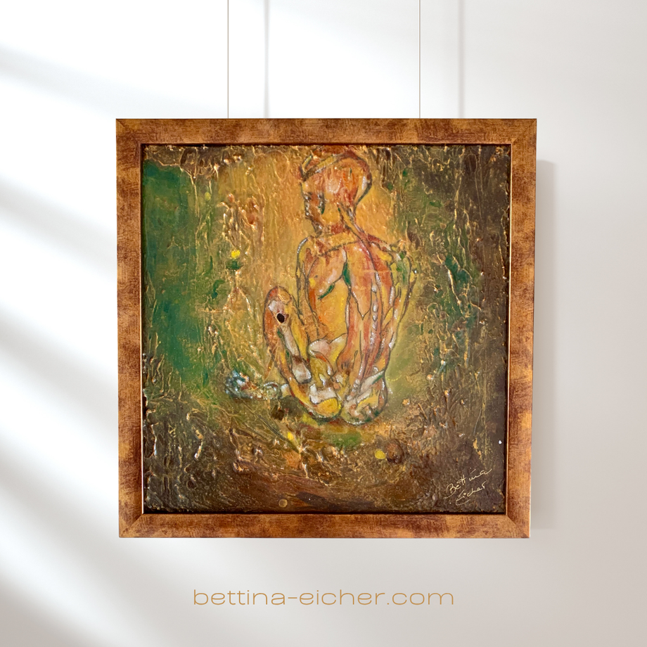 Acryl/Mixed Media Blattgoldfinisch, mit Schattenfugenrahmen